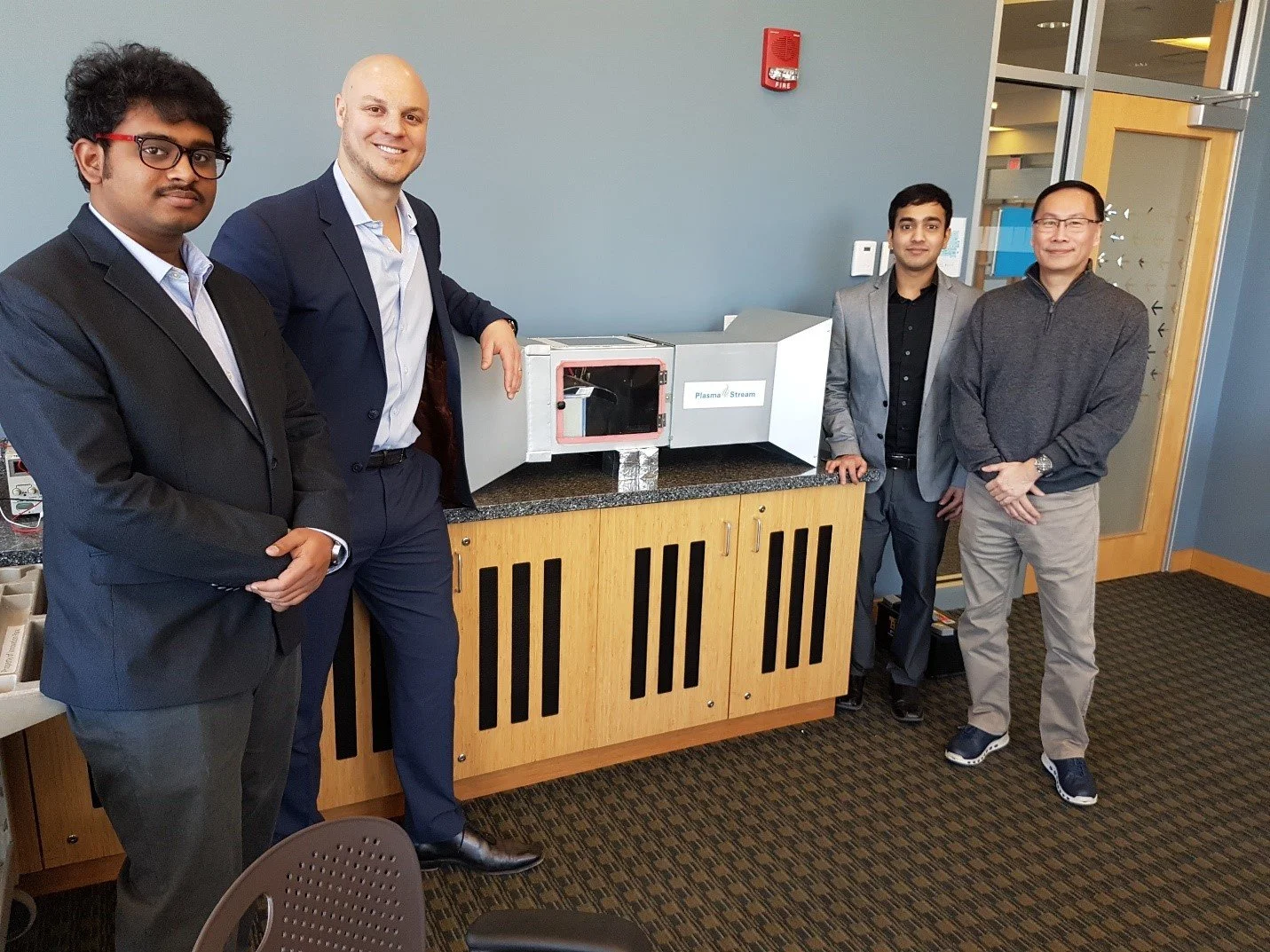 Plasma Stream co-founder, Pranay Bajjuri, gives a live demonstration to industry during a ‘Demo Day’ held at The University of Notre Dame’s IDEA Center in South Bend, Indiana.